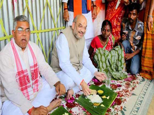കഴിഞ്ഞയാഴ്ച അമിത് ഷായുടെ നേതൃത്വത്തില്‍ നടന്ന വടക്കന്‍ ബംഗാള്‍ പര്യടനത്തിനിടെയാണ് ദമ്ബതികള്‍ സ്വീകരണം നല്‍കിയത്.വാഴയിലയില്‍ വിളമ്ബിയ ഭക്ഷണം അമിത് ഷായും മറ്റ് നേതാക്കളും നിലത്തിരുന്ന് കഴിക്കുന്ന ചിത്രവും പുറത്തുവന്നിരുന്നു.