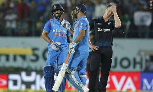 താരതമ്യേന കുറഞ്ഞ വിജയലക്ഷ്യം പിന്‍തുടര്‍ന്ന ഇന്ത്യയ്ക്ക് അജിങ്ക്യ രഹാനെയും രോഹിത ശര്‍മ്മയും മികച്ചതുടക്കമാണ് നല്‍കിയത്. പത്താം ഓവറില്‍ ബ്രേസ്വെല്ലിന്‍റെ പന്തില്‍ രോഹിത വിക്കറ്റില്‍ കുടുങ്ങിയപ്പോള്‍ അധികം വൈകാതെ തന്നെ നീഷാമിന്‍റെ പന്തില്‍ റോഞ്ചിക്ക് ക്യച്ച്‌ നല്‍കി രഹാനെയും മടങ്ങി.