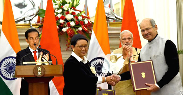 ന്യൂദല്ഹി: ഭാരതവും ഇന്തോനേഷ്യയുമായി വിവിധ കരാറുകള് ഒപ്പിട്ടു. പ്രതിരോധ, സാമ്പത്തികരംഗങ്ങളില് സഹകരണം മെച്ചപ്പെടുത്താനുള്ള കരാറുകളാണ് ഇവയില് പ്രധാനം. പ്രസിഡന്റ് ജോക്കോ വിഡോഡോയും പ്രധാനമന്ത്രി നരേന്ദ്രമോദിയും തമ്മില് നടന്ന കൂടിക്കാഴ്ചകളിലാണ് കരാറുകളില് ഒപ്പിട്ടത്.