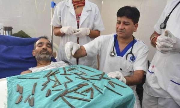 കത്തി വിഴുങ്ങാന്‍ തന്നെ പ്രേരിപ്പിച്ചത് ചില ആത്മീയ ശക്തികളെന്ന് നാല്‍പ്പത് കത്തികള്‍ അകത്താക്കിയ പോലീസുകാരന്‍. പഞ്ചാബ് പോലീസില്‍ ഉദ്യോഗസ്ഥനായ സുര്‍ജീത് സിംഗ് എന്നയാളാണ് കത്തികള്‍ വിഴുങ്ങിയത്. കടുത്ത വയറുവേദനയെ തുടര്‍ന്ന് ആശുപത്രിയില്‍ നടത്തിയ പരിശോധനയിലാണ് സുര്‍ജീത് സിംഗിന്‍റെ വയറ്റില്‍ നാല്‍പ്പതോളം കത്തികള്‍ കണ്ടെത്തിയത്. മാനസിക വെല്ലുവിളി നേരിടുന്ന സുര്‍ജീത് സ്വമേധയാ കത്തികള്‍ വിഴുങ്ങുകയായിരുന്നു.