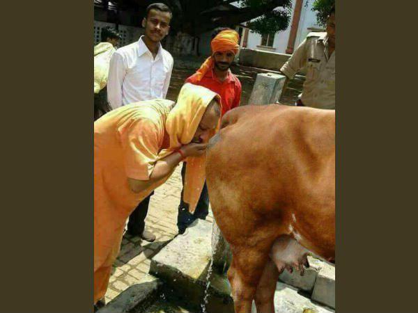 ഗോമാതാവാണ് ഇന്നത്തെ ഇന്ത്യയില് സംഘപരിവാറുകാര്ക്ക് മനുഷ്യനേക്കാള് വലുത്. പശുവും പാലും മാത്രമല്ല മൂത്രവും ചാണകവുമെല്ലാം അവര്ക്ക് പുണ്യവസ്തുക്കളാണ്. സംഘപരിവാരുകാരെ ചാണകസംഘികളെന്നും മറ്റും ഇതിന്റെ പേരില് കളിയാക്കാറുമുണ്ട്. അടുത്തിടെ സോഷ്യല് മീഡിയയില് ഉത്തര്പ്രദേശ് മുഖ്യമന്ത്രി യോഗി ആദിത്യനാഥ് ഗോമൂത്രം കുടിക്കുന്നു എന്ന തരത്തില് ചിത്രം പ്രചരിച്ചിരുന്നു.