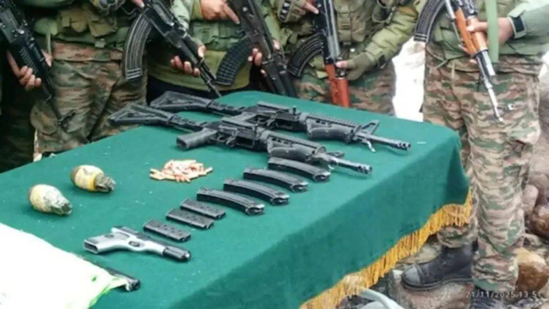 ഓപ്പറേഷനില് അസോള്ട്ട് റൈഫിളുകള് ഉള്പ്പെടെ വലിയൊരു ആയുധശേഖരം കണ്ടെടുത്തതായി സുരക്ഷാസേന സ്ഥിരീകരിച്ചു.രണ്ട് എം4 സീരീസ് അസോള്ട്ട് റൈഫിളുകള്, രണ്ട് ചൈനീസ് പിസ്റ്റളുകള്, ഗ്രനേഡുകള്, വെടിയുണ്ടകള് എന്നിവയാണ് സുരക്ഷാസേന കണ്ടെടുത്തിട്ടുള്ളത്. കൂടുതല് ഒളിത്താവളങ്ങളോ ആയുധശേഖരങ്ങളോ ഉണ്ടോ എന്ന് കണ്ടെത്തുന്നതിനായി സമീപ പ്രദേശങ്ങളില് കൂടുതല് തിരച്ചില് നടക്കുന്നുണ്ട്.