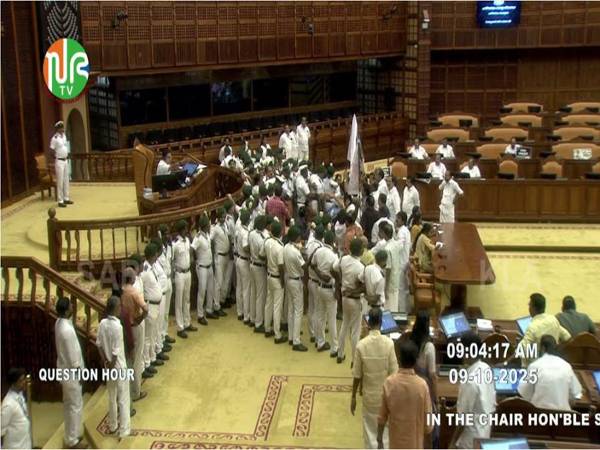 പ്രതിപക്ഷ പ്രതിഷേധം അതിരുകടന്നു. പരുക്കേറ്റ നിയമസഭാ ചീഫ് മാര്ഷല് ഷിബുവിന് ശസ്ത്രക്രിയ വേണമെന്നും എം ബി രാജേഷ് നിയമസഭയില് പറഞ്ഞു. റോജി എം ജോണ്, എം വിന്സന്റ്, സനീഷ് കുമാര് ജോസഫ് എന്നിവരെ സസ്പെന്റ് ചെയ്യണമെന്നു എം ബി രാജേഷ് പ്രമേയം അവതരിപ്പിച്ചു. തുടര്ന്ന് സ്പീക്കര് പ്രമേയം അംഗീകരിക്കുകയായിരുന്നു.