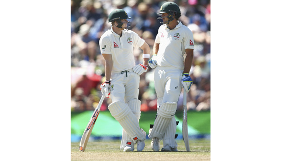 ഒരു വിക്കറ്റിന് 57 എന്ന നിലയില് രണ്ടാം ദിനം തുടങ്ങിയ ഓസീസിന് ഉസ്മാന് ഖവാജയെ (24) തുടക്കത്തിലേ നഷ്ടം. തലേന്നത്തെ സ്കോറിനോട് ആറു റണ്സ് ചേര്ത്തപ്പോഴേക്കും ഖവാജയെ ട്രെന്റ് ബൗള്ട്ട് ഒന്നാം സ്ലിപ്പില് മക്കല്ലത്തിന്റെ കൈയിലെത്തിച്ചു.