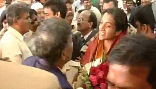 റിയോ ഒളിംപിക്സില് ഇന്ത്യയ്ക്ക് വെള്ളിമെഡല് സമ്മാനിച്ച അഭിമാന താരകം പി.വി സിന്ധുവിനും പരിശീലകന് പുല്ലേല ഗോപിചന്ദിനും ഹൈദരാബാദ് വിമാനത്താവളത്തില് ഗംഭീര വരവേല്പ്പ്. നാടിന്റെ അഭിമാനമായ സിന്ധുവിനെ വരവേല്ക്കാന് നൂറോളം പേരാണ് വിമാനത്താവള പരിസരത്ത് എത്തിയിരുന്നത്. ഇന്ന് രാവിലെയാണ് സിന്ധു ഉള്പ്പെട്ട സംഘം ഹൈദരാബാദിലെത്തിയത്.