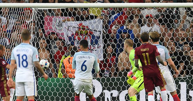 യൂറോകപ്പ് ഫുട്ബോളില് ഇഞ്ചുറി സമയത്ത് നേടിയ ഗോളില് ഇംഗ്ലണ്ടിനെ റഷ്യ സമനിലയില് കുരുക്കി. ഇരു ടീമും ഓരോ ഗോള് വീതം നേടി. യൂറോ ചരിത്രത്തില് ആദ്യമായി ജയത്തോടെ തുടങ്ങാമെന്ന് കരുതിയ ഇംഗ്ലണ്ടുകാരുടെ ജീവനെടുത്തു 92ാം മിനിറ്റില് ബെറെസറ്റ്സ്കിയുടെ തകര്പ്പന് ഹെഡര്. ജയത്തിനും ഫൈനല് വിസിലിനും ഇടയില് നിമിഷങ്ങളുടെ ദൈര്ഘ്യത്തില് ബെറെസറ്റ്സ്കിയുടെ ഫിനിഷില് റഷ്യന് വിപ്ലവം.
