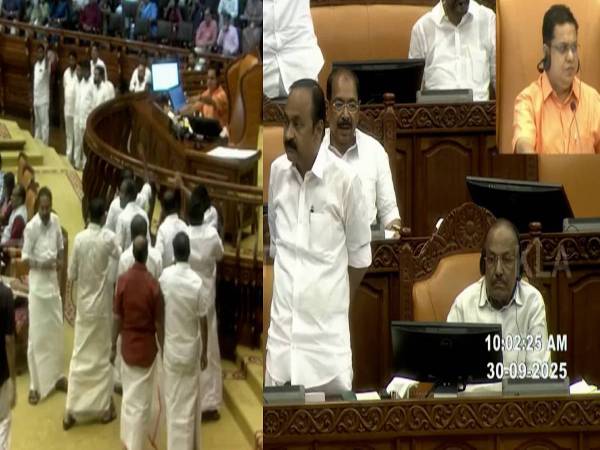 എന്നാല് വിഷയത്തിന് പ്രാധാന്യവും അടിയന്തര സ്വഭാവവും ഇല്ലെന്ന് സ്പീക്കര് എ എന് ഷംസീര് പറയുകയും അടിയന്തര പ്രമേയ നോട്ടീസ് തള്ളുകയുമായിരുന്നു. സ്പീക്കര് പിന്നാലെ മൈക്ക് ഓഫ് ചെയ്തു. തുടര്ന്ന് പ്രതിപക്ഷം സഭയില് ബഹളം വെക്കുകയായിരുന്നു. നടുത്തളത്തിലിറങ്ങി പ്രതിപക്ഷ എംഎല്എമാര് പ്രതിഷേധിച്ചു. സ്പീക്കര്ക്കെതിരെ ബാനര് ഉയര്ത്തിയും പ്രതിപക്ഷം പ്രതിഷേധിച്ചു. സ്പീക്കര് നീതി പാലിക്കണമെന്നും പ്രതിപക്ഷം പറഞ്ഞു. സ്പീക്കറുടെ ഡയസില് തള്ളിക്കയറാനും ശ്രമം നടത്തി.