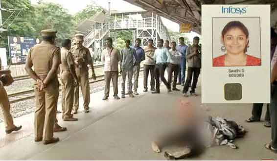 ഇന്ഫോസിസ് കമ്പനിയില് സോഫ്റ്റ് വേര് എന്ജിനിയറാണ് സ്വാതി. ഓഫിസില് പോകുവാന് പതിവായി രാവിലെ പിതാവാണ് സ്വാതിയെ സ്റ്റേഷനിലെത്തിച്ചിരുന്നതെങ്കിലും ഇന്ന് അതുണ്ടായില്ല.