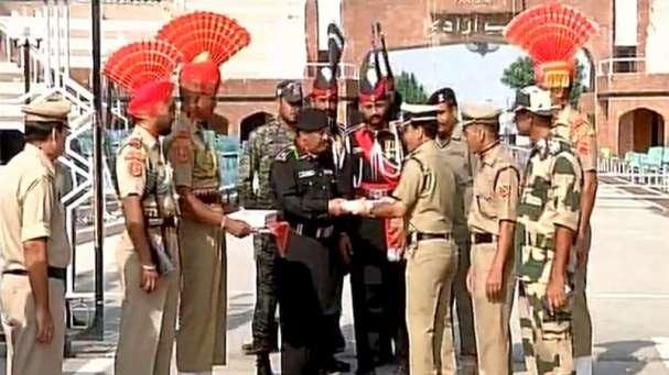 വാഗാ അതിര്‍ത്തിയില്‍ മധുരം പങ്കിട്ട് ഇന്ത്യയും പാകിസ്താനും