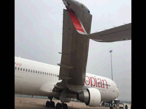 യാത്രക്കാരെ ഇറക്കിയ ശേഷം പാര്ക്ക് ചെയ്തിരുന്ന എയര് ഇന്ത്യ വിമാനത്തിന്റെ ചിറകില് എത്യോപ്യന് വിമാനത്തിന്റെ ചിറകുകള് തട്ടുകയായിരുന്നു. 196 യാത്രക്കാരുമായി എത്യോപ്യന് വിമാനം പറന്നുയരാന് തയ്യാറെടുക്കയായിരുന്നു. സംഭവത്തില് ആര്ക്കും പരിക്കില്ല.