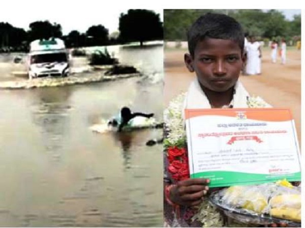 ബം​​ഗ​​ളൂ​​രു: പ്ര​​ള​​യ​​ത്തി​​ല്‍ ന​​ദി ക​​ര​​ക​​വി​​ഞ്ഞൊ​​ഴു​​കി​​യ​​തി​​നെ​​ത്തു​​ട​​ര്‍​ന്ന് വ​ഴി​യ​റി​യാ​തെ പ​​ക​​ച്ചു നി​​ന്ന ആം​​ബു​​ല​​ന്‍​സ് ഡ്രൈ​​വ​​ര്‍​ക്ക് വ​​ഴി​​കാ​​ട്ടി​​യ ആ​​റാം ക്ലാ​​സു​​കാ​​ര​​ന്‍ വെ​​ങ്കി​​ടേ​​ഷി​​ന് സം​​സ്ഥാ​​ന സ​​ര്‍​ക്കാ​​രി​​ന്‍റെ ധീ​​ര​​ത​​യ്ക്കു​​ള്ള പു​​ര​​സ്‌​​കാ​​രം. റെ​​യ്ച്ചൂ​​രി​​ല്‍ ന​​ട​​ന്ന സ്വാ​​ത​​ന്ത്ര്യ​​ദി​​ന ആ​​ഘോ​​ഷ​​ങ്ങ​​ള്‍​ക്കി​​ടെ ഡെ​​പ്യൂ​​ട്ടി ക​​മ്മീ​​ഷ​​ണ​​ര്‍ ശ​​ര​​ത് ബി. ​​ആ​​ണ് പു​​ര​​സ്‌​​കാ​​രം സ​​മ്മാ​​നി​​ച്ച​​ത്.
