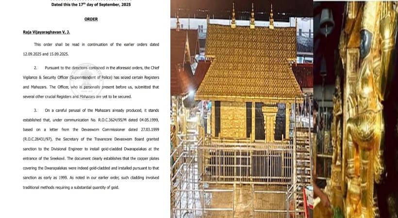 1999 മെയ് 4 ന് സ്വർണം പൂശിയ ദ്വാരപാലക ശിൽപ്പങ്ങൾ ശ്രീകോവിലിന് മുന്നിൽ സ്ഥാപിച്ചുവെന്നും രേഖകളിൽ പറയുന്നു. ദേവസ്വം വിജിലൻസ് കണ്ടെത്തി നൽകിയ രേഖകൾ പരിശോധിച്ച് ഹൈക്കോടതിയാണ് ഇത് സ്ഥിരീകരിച്ചിരിക്കുന്നത്. അടുത്ത ദിവസം കോടതിയുടെ പരിഗണനയിൽ ഈ രേഖകൾ ദേവസ്വം ബോർഡ് ഹാജരാക്കുമെന്നും സൂചനയുണ്ട്.