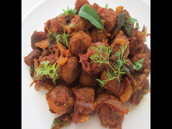 സോയാബീന് കുതിര്ത്തു നന്നായി പിഴിഞ്ഞ് ചെറുതായി മുറിച്ചു വയ്ക്കുക. ഒരു പാന് ചൂടാക്കി ഇതിലേക്ക് പെരും ജീരകം ഇട്ടു ചൂടാകുമ്ബോള് പച്ചമുളകും ഇഞ്ചി വെളുത്തുള്ളി ചതച്ചതും ചേര്ത്തു നന്നായി വഴറ്റുക. ഇതിലേക്ക് കറിവേപ്പിലയും സവോളയും ചേര്ത്തു കൊടുക്കുക.സവോള വഴണ്ടു വരുമ്ബോ പൊടികള് ചേര്ത്തു വഴറ്റുക. ഇതിലേക്ക് തക്കാളി ചേര്ത്തു വേവിക്കുക. ഇതിലേക്ക് അരിഞ്ഞു വച്ചിരിക്കുന്ന സോയാബീന് കഷ്ണങ്ങള് ചേര്ത്തു കുറച്ചു ഉപ്പും വെള്ളവും ചേര്ത്തു വേവിക്കുക. വെള്ളം വറ്റി വരുന്നത് വരെ റോസ്റ്റ് ചെയ്തെടുക്കുക.