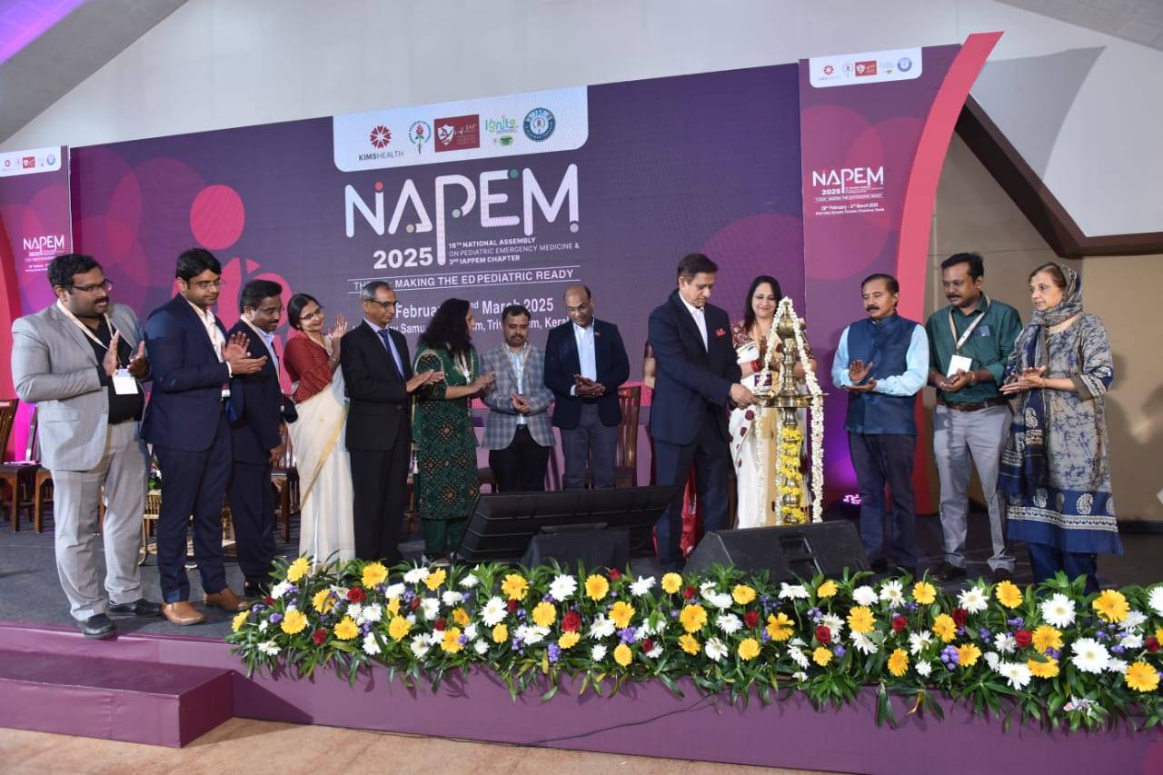 എൻ.എ.പി.ഇ.എം ഓർഗനൈസിംഗ് ചെയർപേഴ്സണും കിംസ്ഹെൽത്തിലെ പീഡിയാട്രിക് എമർജൻസി ആൻഡ് ക്രിട്ടിക്കൽ കെയർ സീനിയർ കൺസൾട്ടന്റും മെഡിക്കൽ സൂപ്രണ്ടുമായ ഡോ. പ്രമീള ജോജി സ്വാഗതം ആശംസിച്ചു. പീഡിയാട്രിക്സ് വിഭാഗം കൺസൾട്ടന്റും എൻ.എ.പി.ഇ.എം ഓർഗനൈസിംഗ് സെക്രട്ടറിയുമായ ഡോ. നീതു ഗുപ്ത ചടങ്ങിന് നന്ദി രേഖപ്പെടുത്തി. കിംസ്ഹെൽത്ത് പ്ലാസ്റ്റിക്, റീകണ്സ്ട്രക്ടീവ്, ആന്ഡ് മൈക്രോവാസ്കുലാര് സര്ജറി വിഭാഗം സീനിയര് കണ്സള്ട്ടന്റ് ഡോ. സഫിയ പി.എമ്മും ചടങ്ങിന്റെ ഭാഗമായി. രണ്ട് ദിവസങ്ങളിലായി കോവളം ഉദയ സമുദ്രയിൽ നടക്കുന്ന കോണ്ക്ലേവ് നാളെ സമാപിക്കും.