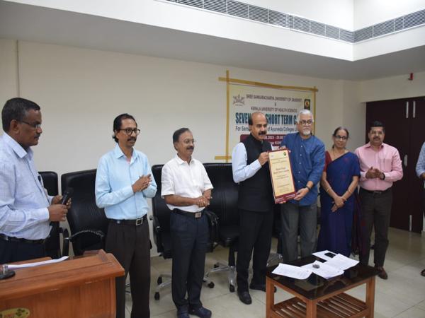 ശ്രീശങ്കരാചാര്യ സംസ്കൃത സർവകലാശാലയുടെയും കേരള ആരോഗ്യ ശാസ്ത്ര സർവകലാശാലയുടെയും സംയുക്ത ആഭിമുഖ്യത്തിൽ ആരോഗ്യ ശാസ്ത്ര സർവ്വകലാശാലയ്ക്ക് കീഴിലുള്ള ആയുർവേദ കോളേജുകളിലെ സംസ്കൃത അധ്യാപകർക്കായി സംഘടിപ്പിക്കുന്ന ഹ്രസ്വകാല കോഴ്സ് ആരോഗ്യ ശാസ്ത്ര സർവ്വകലാശാല ക്യാമ്പസിൽ ആരംഭിച്ചു. ഭാഷയും ശാസ്ത്രവും തമ്മിലുള്ള സമന്വയം സാധ്യമാക്കുന്നതിനുള്ള ദൗത്യമാണ് ഇരു സർവകലാശാലകളും ഏറ്റെടുത്തിരിക്കുന്നതെന്ന് ഹ്രസ്വകാല കോഴ്സ് ഉദ്ഘാടനം ചെയ്തുകൊണ്ട് ശ്രീശങ്കരാചാര്യ സംസ്കൃത സർവ്വകലാശാല വൈസ് ചാൻസലർ ഡോ. എം. വി. നാരായണൻ പറഞ്ഞു. നൂറ്റാണ്ടുകൾക്ക് മുമ്പ് രചിക്കപ്പെട്ട മൂലഗ്രന്ഥങ്ങൾ കാലാനുസൃതമായ പുനഃവായനയ്ക്ക് വിധേയമാക്കുവാൻ കഴിയണമെന്ന് കേരള ആരോഗ്യ ശാസ്ത്ര സർവ്വകലാശാല വൈസ് ചാൻസലർ ഡോ. മോഹനൻ കുന്നുമ്മൽ പറഞ്ഞു.
