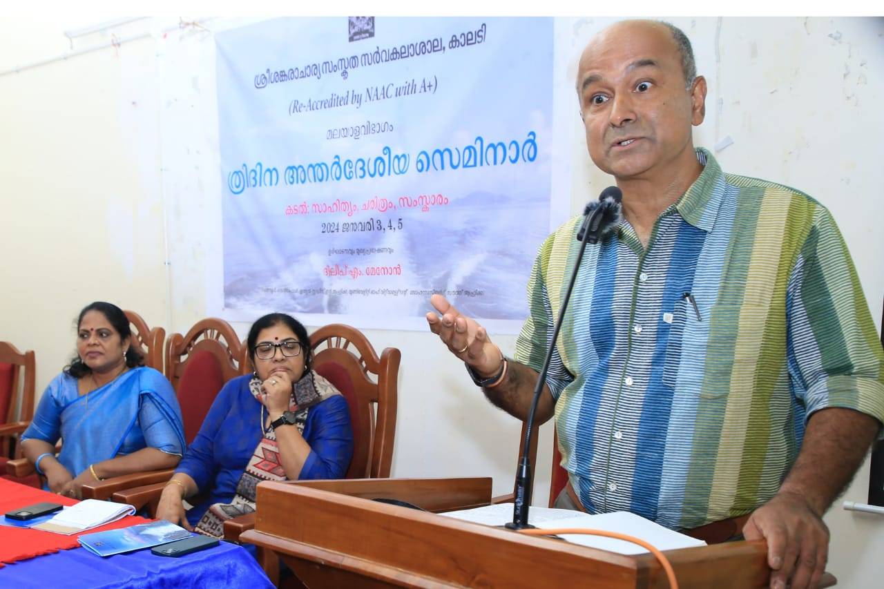 ശ്രീശങ്കരാചാര്യ സംസ്കൃത സര്വകലാശാല മലയാളവിഭാഗം ‘കടല്: സാഹിത്യം ചരിത്രം സംസ്കാരം’ എന്ന വിഷയത്തില് സംഘടിപ്പിക്കുന്ന ത്രിദിന അന്തര്ദേശീയ സെമിനാറിന് തുടക്കമായി. ജോഹനാസ്ബർഗിലെ വിറ്റ്വാട്ടർസ്രാൻഡ് സർവകലാശാലയിലെ സെൻ്റർ ഫോർ ഇന്ത്യൻ സ്റ്റഡീസ് ഇൻ ആഫ്രിക്കയുടെ ഡയറക്ടറും ചരിത്രകാരനുമായ ദിലീപ് എം മേനോൻ സെമിനാറിന്റെ ഉദ്ഘാടനവും മുഖ്യപ്രഭാഷണവും നിർവഹിച്ചു. ആഗോളതാപനത്തിൻ്റെ ഘട്ടത്തിൽ കടലും കാലാവസ്ഥാവ്യതിയാനവും തമ്മിലുള്ള ബന്ധം പോലെ തന്നെ ചരിത്രവും സംസ്കാരവും സാഹിത്യവും കടലുമായി എപ്രകാരം ബന്ധപ്പെട്ടിരിക്കുന്നു എന്നതും പ്രധാനമാണ് എന്ന് അദ്ദേഹം പറഞ്ഞു. മലയാള വിഭാഗം മേധാവി ഡോ. എസ്. പ്രീയ അധ്യക്ഷയായിരുന്നു. വൈസ് ചാൻസലർ പ്രൊഫ. എം വി നാരായണൻ, ഡോ. സുനിൽ പി. ഇളയിടം, ഡോ. സജിത കെ. ആർ., ഡോ. സംഗീത തിരുവൾ, എന്നിവർ പ്രസംഗിച്ചു. ഡോ. മഹ്മൂദ് കൂരിയ, ഫ്രാൻസിസ് നൊറോണ, ഡോ. എം കെ സജീവൻ, ശരണ്യ ചന്ദ്രൻ എന്നിവർ പ്രബന്ധങ്ങൾ അവതരിപ്പിച്ചു. സെമിനാർ വെള്ളിയാഴ്ച്ച സമാപിക്കും.