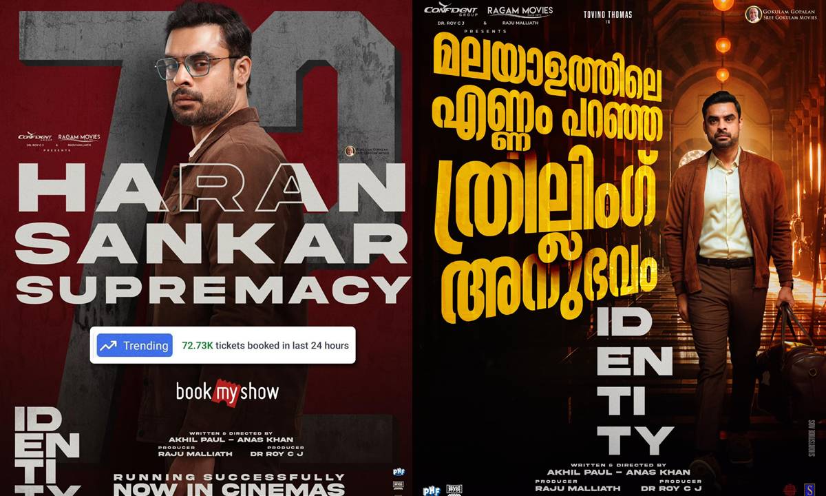 2025ലെ ആദ്യ ബ്ലോക്ക്ബസ്റ്റർ ഹിറ്റിന് ടൊവിനോ തോമസ് തുടക്കമിട്ടു. അഖിൽ പോളും അനസ് ഖാനും ചേർന്ന് സംവിധാനം ചെയ്ത ഇൻവെസ്റ്റിഗേഷൻ ക്രൈം ത്രില്ലർ ചിത്രം ‘ഐഡന്റിറ്റി’ മികച്ച അഭിപ്രായങ്ങൾ ഏറ്റുവാങ്ങി തിയറ്ററുകളിൽ പ്രദർശനം തുടരുകയാണ്. ഞെട്ടിക്കുന്ന പ്രകടനമാണ് പ്രേക്ഷകരുടെ പ്രിയ താരങ്ങളായ ടോവിനോ തോമസും തൃഷ കൃഷ്ണയും വിനയ് റായും ചിത്രത്തിൽ കാഴ്ച്ചവെച്ചത്. ട്വിസ്റ്റ്, സസ്പെൻസ്, സർപ്രൈസ് എന്നിവയാൽ സമ്പന്നമായ ചിത്രം ആദ്യാവസാനം വരെ ത്രില്ലടിപ്പിക്കുന്നുണ്ടെന്നും ഒട്ടും തന്നെ ബോറടിപ്പിക്കുന്നില്ലെന്നുമാണ് സിനിമ കണ്ടവർ പറയുന്നത്. രാഗം മൂവിസിന്റെ ബാനറിൽ രാജു മല്യത്തും കോൺഫിഡന്റ് ഗ്രൂപ്പിന്റെ ബാനറിൽ ഡോ. റോയി സി ജെയും ചേർന്ന് നിർമ്മിച്ച ചിത്രം ശ്രീ ഗോകുലം മൂവിസിന് വേണ്ടി ഡ്രീം ബിഗ് ഫിലിംസാണ് തീയേറ്ററുകളിലെത്തിച്ചത്. ചിത്രത്തിന് തമിഴ് നാട്ടിലും മികച്ച പ്രതികരണമാണ് ലഭിക്കുന്നത്. ചിത്രത്തിലെ ത്രില്ലിംഗ് രംഗങ്ങൾ കോർത്തിണക്കി ഒരുക്കിയ ചിത്രത്തിന്റെ സക്സസ് ടീസർ അണിയറ പ്രവർത്തകർ പുറത്തുവിട്ടിട്ടുണ്ട്. പ്രേക്ഷകരുടെ ആകാംക്ഷ ഇരട്ടിപ്പിക്കുന്ന ടീസറാണിപ്പോൾ സമൂഹ മാധ്യമങ്ങളിൽ വൈറലായിക്കൊണ്ടിരിക്കുന്നത്.