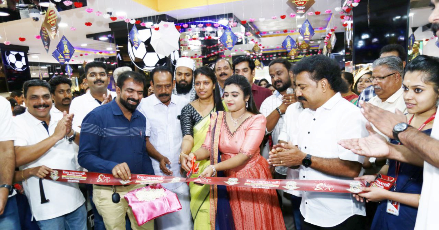 ബോബി ചെമ്മണൂര് ഇന്റര്നാഷണല് ജ്വല്ലേഴ്സ് കട്ടപ്പന ഷോറൂമിന്റെ എട്ടാം വാര്ഷികം ഉദ്ഘാടനം ചെയ്തു.ബോബി ചെമ്മണൂര് ഇന്റര്നാഷണല് ജ്വല്ലേഴ്സ് കട്ടപ്പന ഷോറൂമിന്റെ എട്ടാം വാര്ഷികം സീരിയല് താരം രേഷ്മ ആര് നായര് ഉദ്ഘാടനം ചെയ്തു. കട്ടപ്പന മുനിസിപ്പല് കൗണ്സിലര് ധന്യ, ഗോള്ഡ് സില്വര് മര്ച്ചന്റ് അസോസിയേഷന് പ്രസിഡന്റ് അഡ്വക്കേറ്റ് എം കെ തോമസ്, കേരള വ്യാപാരി വ്യവസായി ഏകോപന സമിതി (കട്ടപ്പന) സെക്രട്ടറി കെ ടി ഹസന്, കട്ടപ്പന ജുമാ മസ്ജിദ് ഇമാം യൂസഫ് മൗലവി അല് കൗസരി എന്നിവര് ചടങ്ങില് പങ്കെടുത്തു. ബോബി ചെമ്മണൂര് ഇന്റര്നാഷണല് ജ്വല്ലേഴ്സ് സോണല് മാനേജര് ബിജു ജോര്ജ്, റീജണല് മാനേജര്മാരായ ജോപോള്, വൈശാഖന്, ബാബു, ഷോറൂം മാനേജര്മാരായ ബിജു. ഇ.വി., ഷോണ് തോമസ് എന്നിവര് ചടങ്ങില് സംബന്ധിച്ചു.