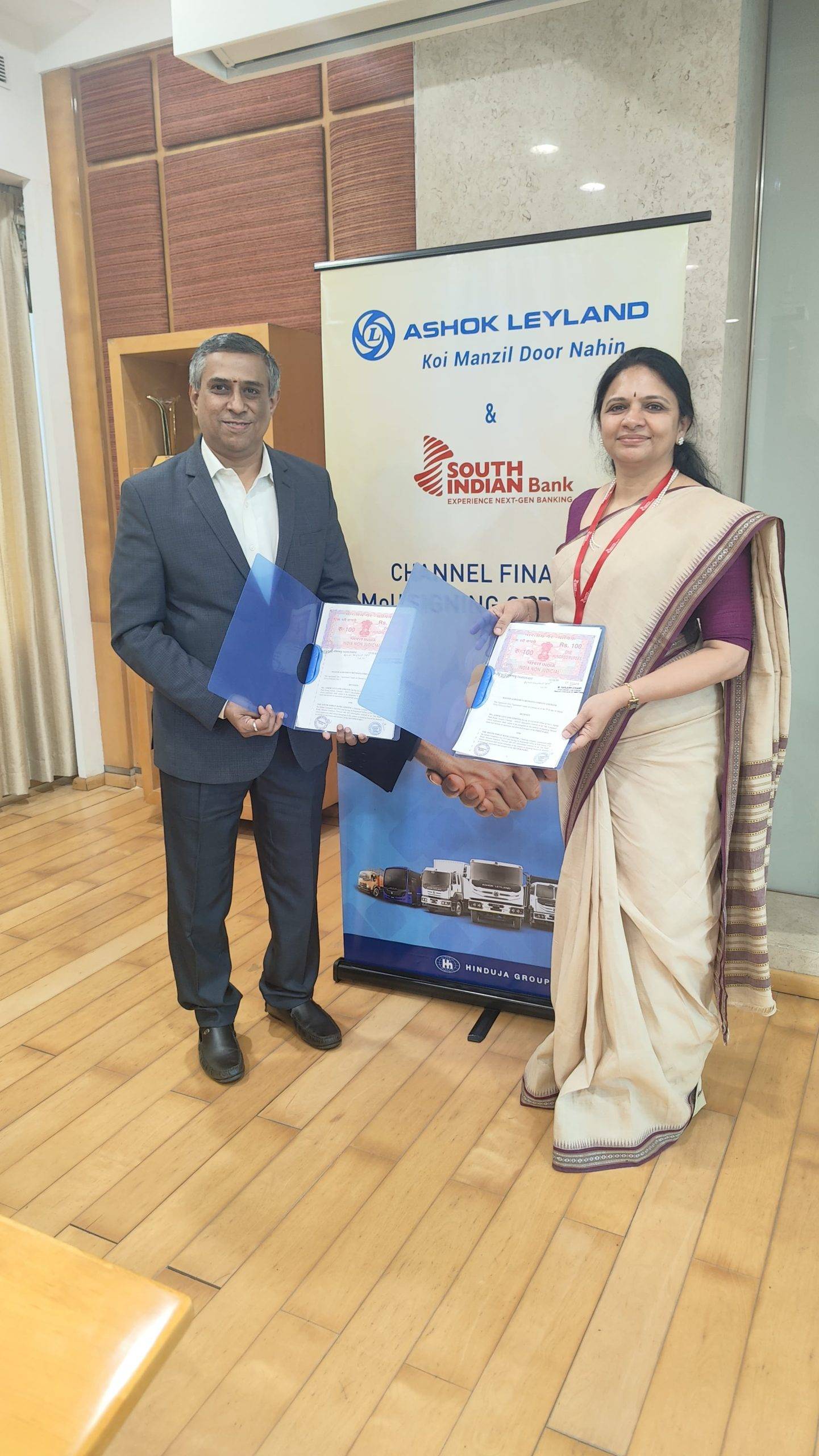 കൊച്ചി: അശോക് ലെയ്ലന്റ് വാഹന ഡീലേഴ്സിന് ഇനിമുതൽ സൗത്ത് ഇന്ത്യൻ ബാങ്കിൽ നിന്നും ഡീലർ ഫിനാൻസ് സേവനങ്ങൾ ലഭ്യമാകും. ഇതു സംബന്ധിച്ച ധാരണാപത്രത്തിൽ സൗത്ത് ഇന്ത്യൻ ബാങ്ക് സീനിയർ ജനറൽ മാനേജറും ഗ്രൂപ്പ് ബിസിനസ് ഹെഡുമായ ബിജി എസ് എസ്, അശോക് ലെയ്ലന്റിന്റെ ട്രഷറി ഹെഡ് സി നീലകണ്ഠൻ എന്നിവർ ഒപ്പുവെച്ചു. വാഹന വിപണന രംഗത്ത് മുൻനിരയിലുള്ള അശോക് ലെയ്ലന്റുമായി കൈകോർക്കുന്നതിലൂടെ വൈവിധ്യമാർന്ന ഡീലർ ഫിനാൻസ് സേവനം വിപുലപ്പെടുത്താനാണ് സൗത്ത് ഇന്ത്യൻ ബാങ്ക് ലക്ഷ്യമിടുന്നത്.