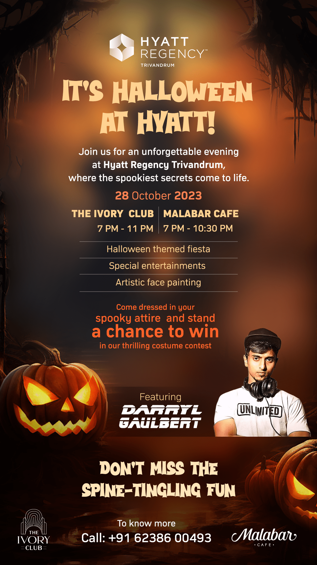 തിരുവനന്തപുരം: ഹാലോവീൻ നൈറ്റ് ആഘോഷങ്ങൾ സംഘടിപ്പിക്കാനൊരുങ്ങി ഹയാത്ത് റീജൻസി തിരുവനന്തപുരം. ഒക്ടോബർ 28-ന് വൈകുന്നേരം 7 മണി മുതൽ രാത്രി 11 വരെ ഐവറി ക്ലബ്ബിലും 7 മണി മുതൽ രാത്രി 10:30 വരെ മലബാർ കഫേയിലുമായാണ് പരിപാടി സംഘടിപ്പിക്കുന്നത്. ഹാലോവീൻ തീമിലുള്ള അലങ്കാരങ്ങൾ, വൈവിധ്യമാർന്ന ഭക്ഷണം, സ്പെഷ്യൽ ഡ്രിങ്കുകൾ, ഫേസ്-പെയിന്റിംഗ് സെഷനുകൾ എന്നിവയാണ് പരിപാടിയുടെ മുഖ്യാകർഷണം. ഡാരിൽ ഗോൾബർട്ട് നയിക്കുന്ന സംഗീതനിശയും പരിപാടിയുടെ ഭാഗമായി നടക്കും. അതിഥികൾ ഹാലോവീനിന് അനുയോജ്യമായ വസ്ത്രങ്ങൾ ധരിച്ചുവേണം പാർട്ടിയിൽ പങ്കെടുക്കാൻ. ഏറ്റവും മികച്ച ഹാലോവീൻ വസ്ത്രം ധരിക്കുന്നവർക്ക് രസകരമായ സമ്മാനങ്ങളും ഉണ്ടായിരിക്കും.