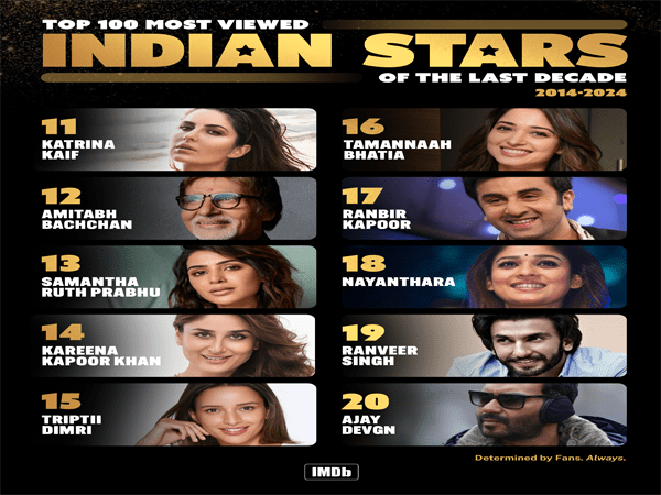 കൊച്ചി May 29, 2024—IMDb (www.imdb.com), ടിവി,സിനിമ,സെലിബ്രിറ്റി തുടങ്ങിയവയെക്കുറിച്ചുള്ള ലോകത്തിലെ തന്നെ ഏറ്റവും പ്രശസ്തവും ആധികാരികവുമായ വിവരങ്ങൾ ലഭിക്കുന്ന IMDb കഴിഞ്ഞ 10 വർഷത്തിൽ ഏറ്റവും കൂടുതൽ പ്രേക്ഷകരുള്ള 100 ഇന്ത്യൻ താരങ്ങളെ പ്രഖ്യാപിച്ചു. ലോകമെമ്പാടും 250 ദശലക്ഷം പ്രതിമാസ സന്ദർശകരുള്ള IMDb യുടെ തന്നെ പേജിനെ അടിസ്ഥാനമാക്കിയാണ് വിധി നിർണയം.