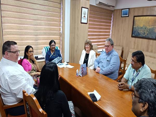 ഫോട്ടോ ക്യാപ്ഷന്: യു എസ് നികുതി രംഗത്തെക്കുറിച്ചു അന്താരാഷ്ട്ര കോണ്ക്ലേവില് പങ്കെടുക്കാനെത്തിയ വിദേശ പ്രതിനിധികളുമായി ഉന്നത വിദ്യാഭ്യാസ മന്ത്രി ആര് ബിന്ദു കൂടിക്കാഴ്ച നടത്തുന്നു.