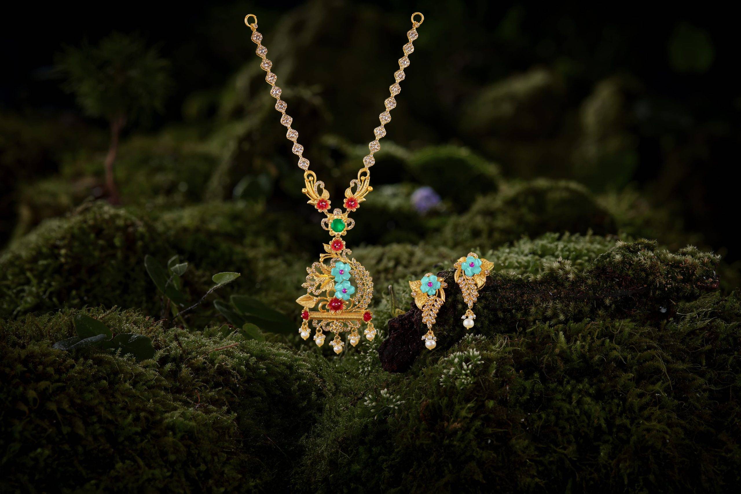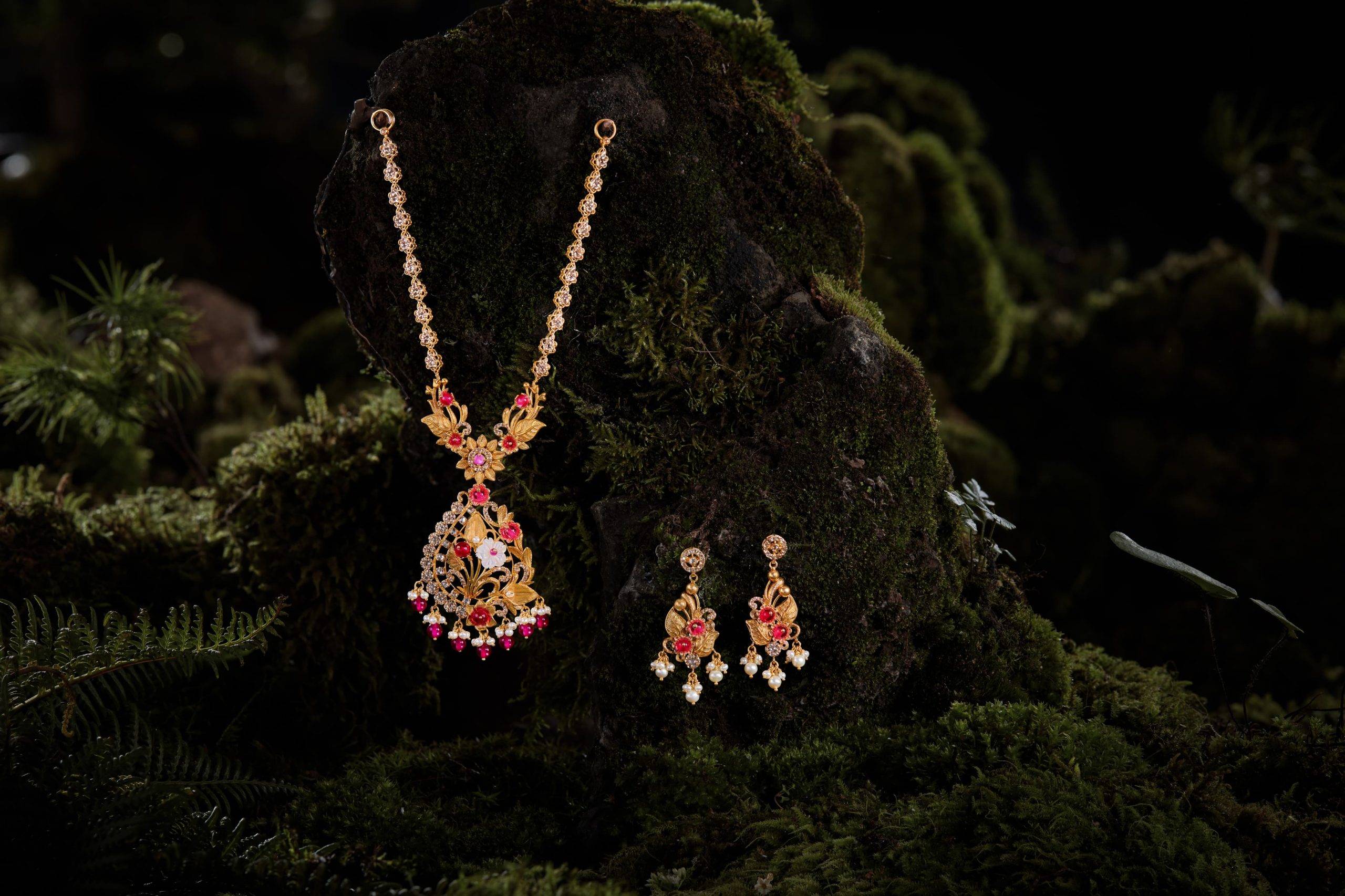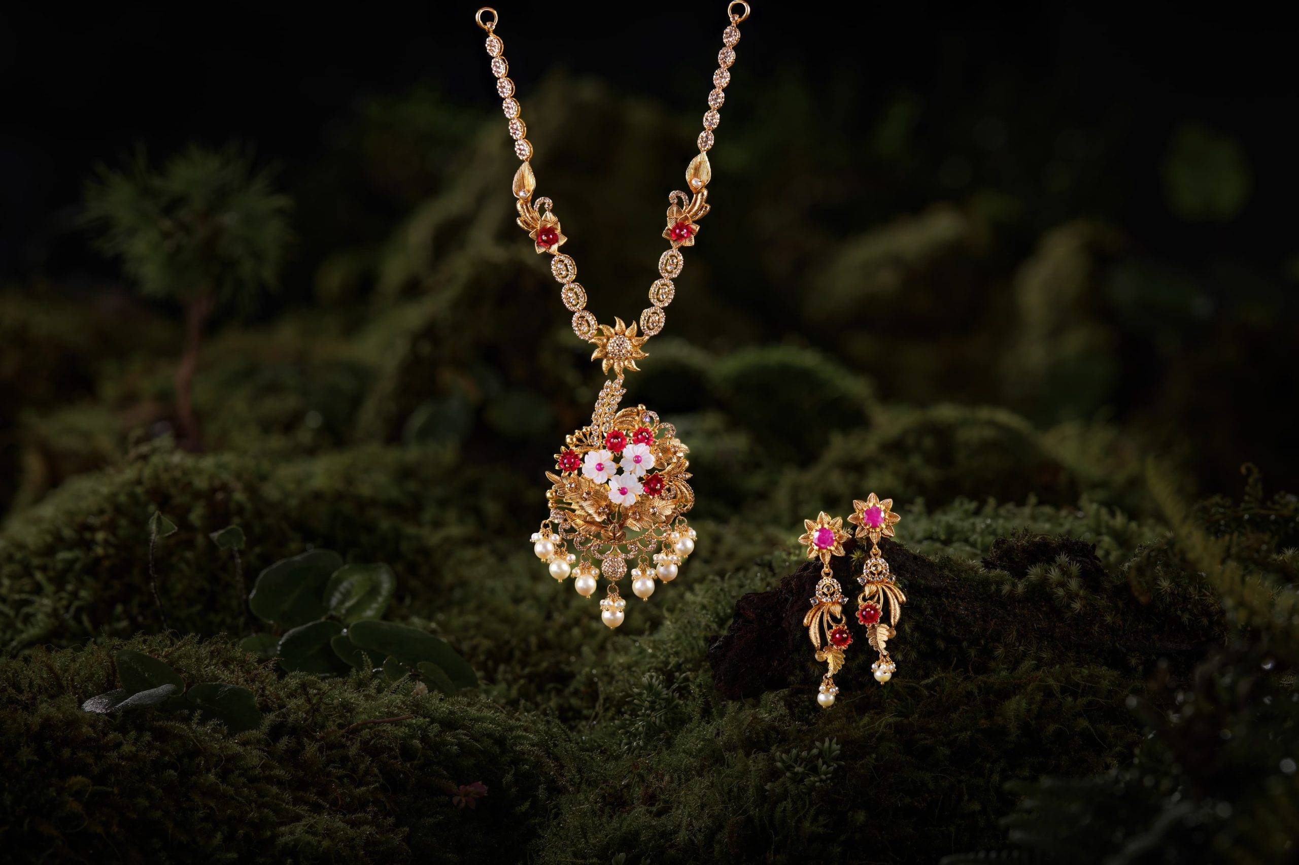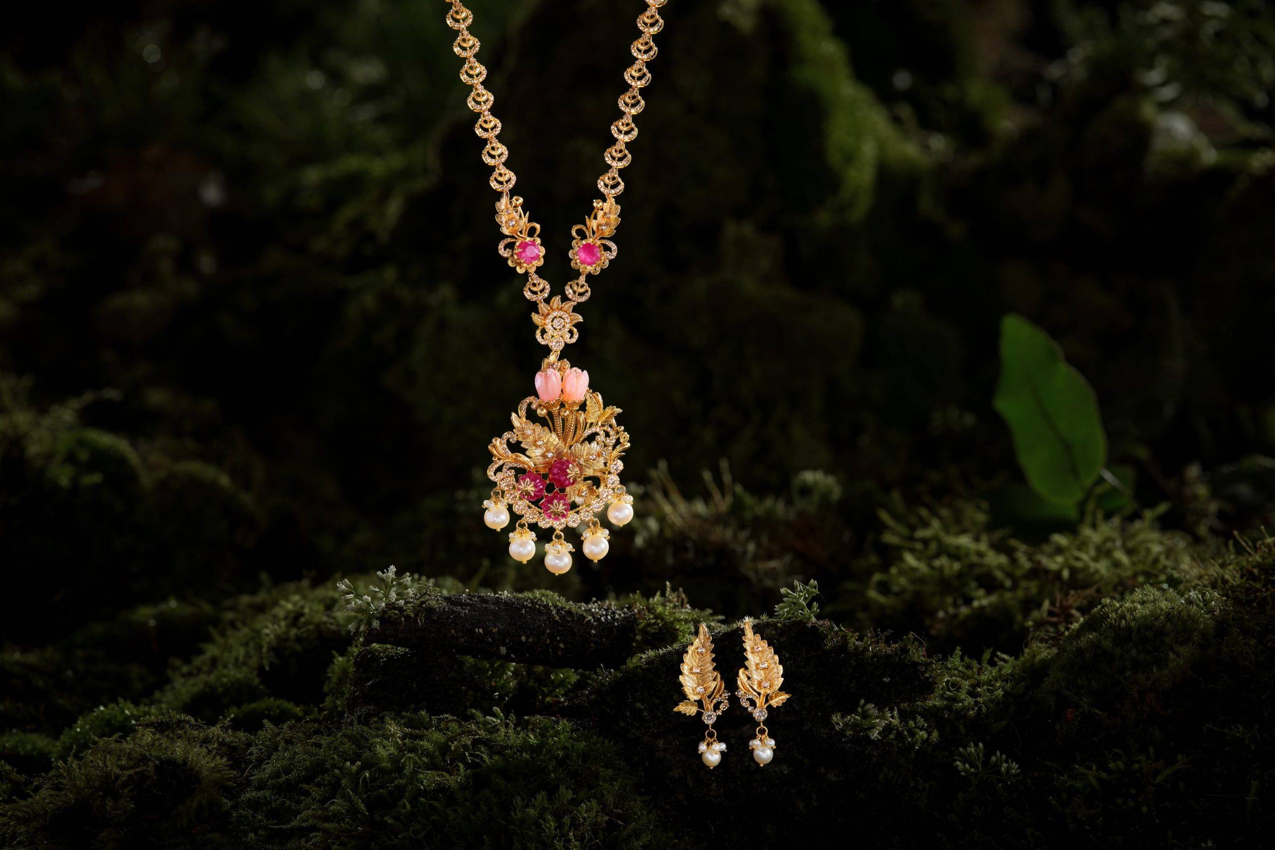 സ്വര്ണത്തില് തീര്ത്ത് അണ്കട്ട് ഡയമണ്ടുകളും മദര് ഓഫ് പേളും സെമി-പ്രഷ്യസ് കല്ലുകളും ഉപയോഗിച്ച് അലങ്കരിച്ചവയാണ് പുഷ്പ ശേഖരത്തിലെ ആഭരണങ്ങള്. പ്രകൃതിയുടെ വന്യ സൗന്ദര്യത്തിനുള്ള ആദരവെന്നോണമാണ് ഈ ആഭരണങ്ങള് രൂപപ്പെടുത്തിയിരിക്കുന്നത്.