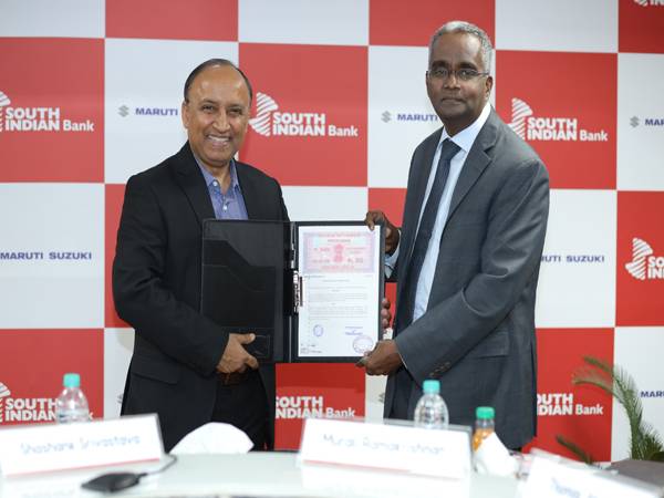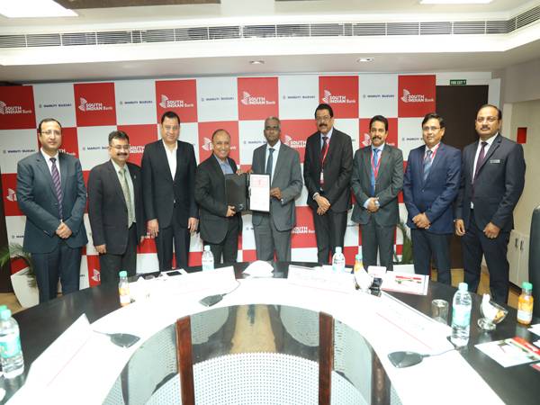 മാരുതി സുസുകി ഇന്ത്യ ലിമിറ്റഡ് സീനിയര് എക്സിക്യൂട്ടീവ് ഓഫീസര് (മാര്ക്കറ്റിങ് & സെയില്സ്) ശശാങ്ക് ശ്രീവാസ്തവ, എക്സിക്യൂട്ടീവ് വൈസ് പ്രസിഡന്റ് (സെയില്സ്) ഭുവന് ധീര്, സൗത്ത് ഇന്ത്യന് ബാങ്ക് എംഡിയും സിഇഒയുമായ മുരളി രാമകൃഷ്ണന്, ഇരു സ്ഥാപനങ്ങളിലേയും മറ്റു ഉന്നത ഉദ്യോഗസ്ഥര് എന്നിവരുടെ സാന്നിധ്യത്തിലാണ് ധാരണാ പത്രം ഒപ്പുവച്ചത്.