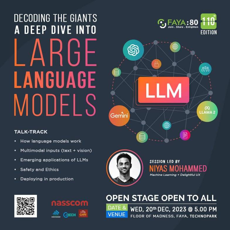 തിരുവനന്തപുരം: ടെക്നോപാര്ക്കിലെ നോളഡ്ജ് കമ്മ്യൂണിറ്റിയായ ഫയ:80 ആതിഥേയത്വം വഹിക്കുന്ന സെമിനാറില് ‘ഡീകോഡിംഗ് ദി ജയന്റ്സ്: എ ഡീപ് ഡൈവ് ഇന് ടു ലാര്ജ് ലാംഗ്വേജ് മോഡലുകള്’ എന്ന വിഷയത്തില് ചര്ച്ച നടക്കും. ന്യൂറല്ക്രാഫ്റ്റ് സഹസ്ഥാപകന് നിയാസ് മുഹമ്മദ് നയിക്കുന്ന സെമിനാര് ഡിസംബര് 20 ബുധനാഴ്ച വൈകിട്ട് 5 മണിക്ക് ടെക്നോപാര്ക്ക് തേജസ്വിനി ബില്ഡിംഗിലെ ഫയ ‘ഫ്ളോര് ഓഫ് മാഡ്നെസ്സി’ല് നടക്കും.