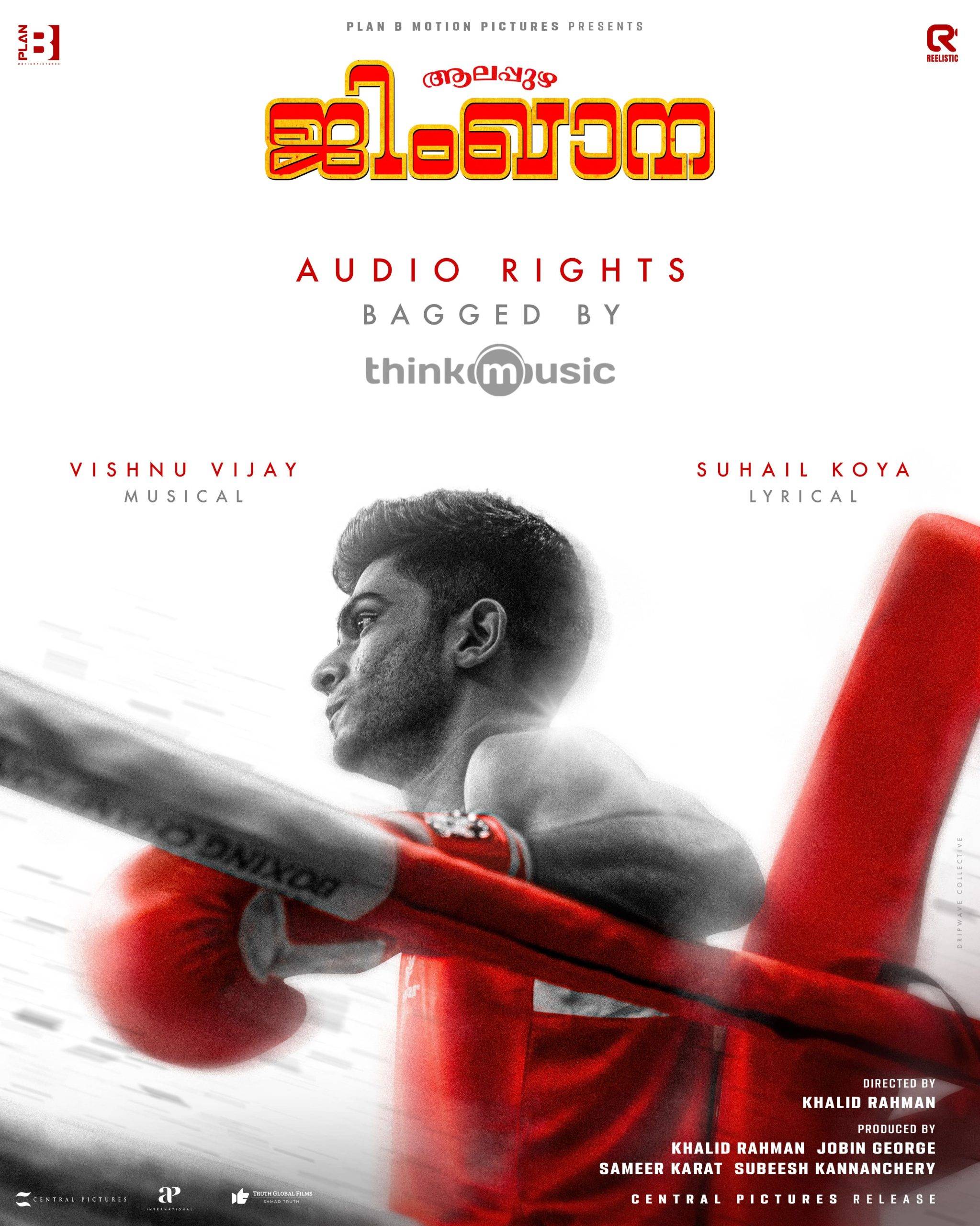 ആലപ്പുഴ ജിംഖാനയുടെ ഓഡിയോ റൈറ്റ് വൻ തുകക്ക് ഇന്ത്യയിലെ പ്രമുഖ കമ്പനിയായ തിങ്ക് മ്യൂസിക് കരസ്ഥമാക്കിയിരിക്കുകയാണ്. സുഹൈൽ കോയയുടെ വരികൾക്ക് വിഷ്ണു വിജയാണ് സംഗീതം നിർവ്വഹിക്കുന്നത്. ഗപ്പി, അമ്പിളി, തല്ലുമാല, ഫാലിമി, പ്രേമലു തുടങ്ങിയ ചിത്രങ്ങളിൽ സൂപ്പർ ഹിറ്റ് ഗാനങ്ങൾ ഒരുക്കിയതും വിഷ്ണു വിജയാണ്. ചിത്രത്തിന്റെ ഗാനങ്ങൾ ഉടൻ പുറത്തിറങ്ങും. ആലപ്പുഴ ജിംഖാനയിലെ താരങ്ങളുടെ പുതിയ ഗെറ്റപ്പിലൂടെ എത്തിയ ഫസ്റ്റ് പോസ്റ്ററും ക്യാരക്ടർ പോസ്റ്ററുകളും സോഷ്യൽ മീഡിയയിൽ ട്രെൻഡായിരുന്നു.