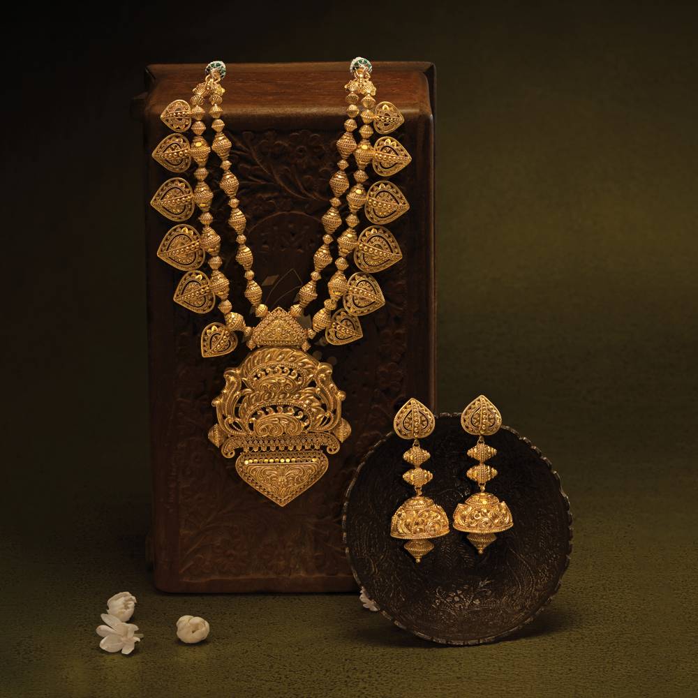 കലാകാരന്മാരുടെ അതുല്യമായ വിരുത് ധരോഹര് ശേഖരത്തില് ഉയര്ത്തിക്കാട്ടപ്പെടുകയാണ്. സങ്കീര്ണമായ ചന്ദക് വര്ക് മുതല് അപൂര്വ്വമായ ബദ്റൂം സാങ്കേതികവിദ്യയും ആകര്ഷകമായ റാസ്റവയും വരെ പാരമ്പര്യം പ്രതിഫലിപ്പിക്കുന്ന ഓരോ ആഭരണത്തിലും ദര്ശിക്കാം. ഈ ശേഖരത്തിലെ എടുത്തു പറയേണ്ടവയാണ് തപ്പാ വര്ക്ക് കൊണ്ടലങ്കരിച്ച ചോക്കര് നെക്ലസ് സെറ്റ്, സങ്കീര്ണമായ ഫില്ഗ്രീ വര്ക്കുമായുള്ള റീഗല് നെക്ലസ്, കുന്ദന് ഇന്ലേ വര്ക്കുമായുള്ള ക്ലാസിക് സെറ്റ്, ബദ്റൂംപാറ്റേണിലുള്ള ടര്ക്കോയ്സ് സെറ്റ് തുടങ്ങിയവ. കൂടാതെ മറ്റ് അനേകം നെക്ലസ് സെറ്റുകള്, വളകള്, ബ്രെയ്സ്ലെറ്റുകള്, മോതിരങ്ങള് തുടങ്ങിയവയും ഈ ശേഖരത്തിലുണ്ട്.
