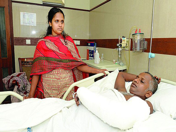 ആശുപത്രിയില് കഴിയുന്ന ശ്രീജന്. സമീപം ഭാര്യ രമ്യ