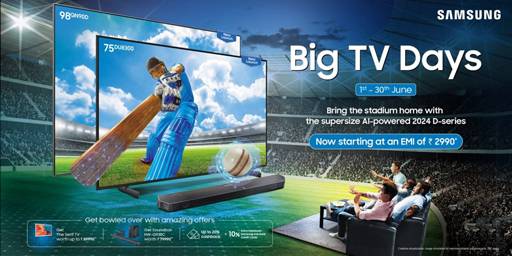 ഇന്ത്യയിലെ ഏറ്റവും വലിയ ഉപഭോക്തൃ ഇലക്ട്രോണിക്സ് ബ്രാൻഡായ സാംസങ്, നിയോ ക്യുഎൽഇഡി, ഒഎൽഇഡി, ക്രിസ്റ്റൽ 4K യുഎച്ച്ഡി ടിവികൾ ഉൾപ്പെടെയുള്ള അൾട്രാ പ്രീമിയം ടിവികൾക്ക് വമ്പിച്ച ഓഫറുകൾ പ്രഖ്യാപിച്ചു. ടി20 ക്രിക്കറ്റ് ലോകകപ്പ് ആരാധകരുടെ വീടുകളിലേക്ക് ഒരു സ്റ്റേഡിയത്തിന്റെ അനുഭവം നേരിട്ട് എത്തിക്കുക എന്ന ലക്ഷ്യത്തോടെയാണ് ‘ബിഗ് ടിവി ഡേയ്സ്’ ഓഫറുകൾ അവതരിപ്പിച്ചിരിക്കുന്നത്.