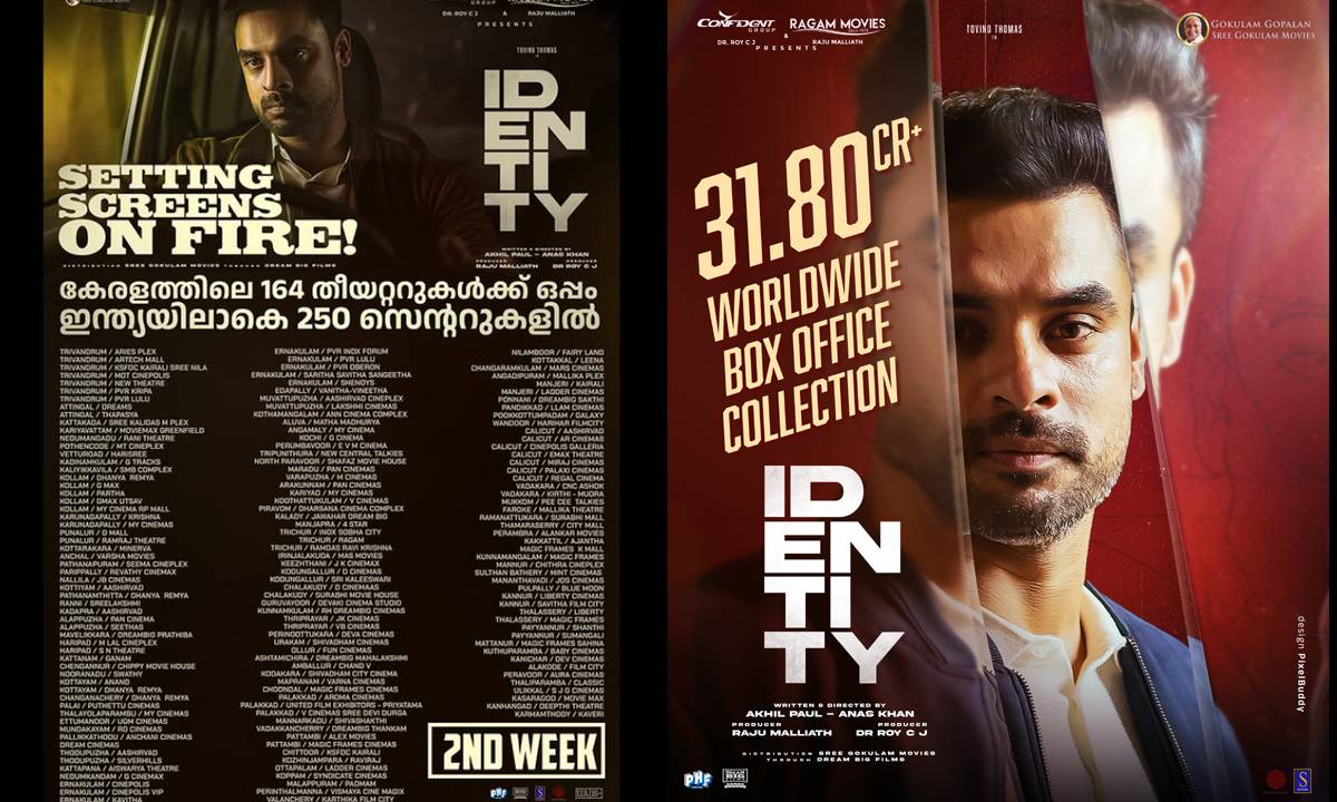 2025 തുടക്കം തന്നെ ഗംഭീരമാക്കി ടോവിനോ തോമസ് ചിത്രം ‘ഐഡന്റിറ്റി’ ബോക്സ് ഓഫീസിൽ ഹിറ്റ് ലിസ്റ്റിൽ ഇടം നേടുന്നു. അഖിൽ പോളും അനസ് ഖാനും ചേർന്ന് സംവിധാനം ചെയ്ത ഇൻവെസ്റ്റിഗേഷൻ ക്രൈം ത്രില്ലർ ചിത്രം ‘ഐഡന്റിറ്റി’ മികച്ച അഭിപ്രായങ്ങൾ ഏറ്റുവാങ്ങി തിയറ്ററുകളിൽ പ്രദർശനം തുടരുമ്പോൾ ബോക്സ് ഓഫീസിൽ ഒൻപത് ദിവസം കൊണ്ട് 31.80 കോടി രൂപയാണ് വേൾഡ് വൈഡ് കളക്ഷൻ.