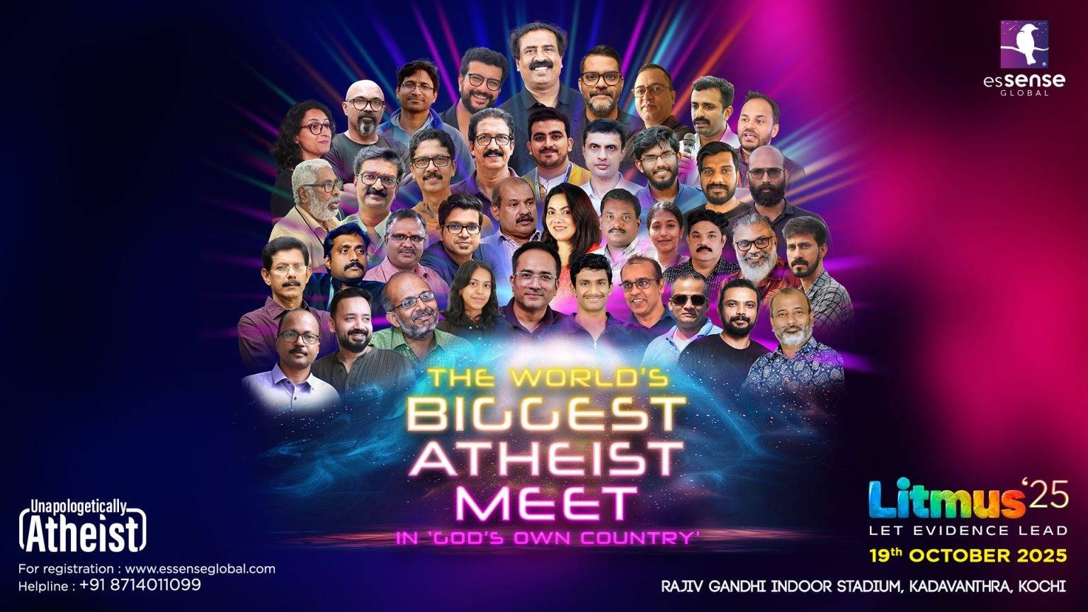ശാസ്ത്രാവബോധത്തിന്റെയും മാനവികതയുടെയും ആഘോഷമായി, സ്വതന്ത്രചിന്തകരുടെ ഏറ്റവും വലിയ സമ്മേളനത്തിന് ഒരുങ്ങി കൊച്ചി. ശാസ്ത്ര- സ്വതന്ത്രചിന്താ പ്രസ്ഥാനമായ എസെന്സ് ഗ്ലോബലിന്റെ വാര്ഷിക സമ്മേളനമായ ലിറ്റ്മസ് 25, ഒക്ടോബര് 19ന് ഞായറാഴ്ച എറണാകുളം കടവന്ത്രയിലെ രാജീവ്ഗാന്ധി ഇന്ഡോര് സ്റ്റേഡിയത്തില് നടക്കുമെന്ന് സംഘാടകര് വാര്ത്താ സമ്മേളനത്തില് അറിയിച്ചു. എഴുത്തുകാരും, ശാസ്ത്രജ്ഞരും, മതവിമര്ശകരും അടക്കം ലോകത്തിന്റെ വിവിധ ഭാഗങ്ങളിലുള്ള പ്രമുഖ വ്യക്തികള് ‘സ്വതന്ത്രചിന്തയുടെ വസന്തോത്സവത്തിന്റെ’ വിവിധ സെഷനുകളില് സംബന്ധിക്കും.