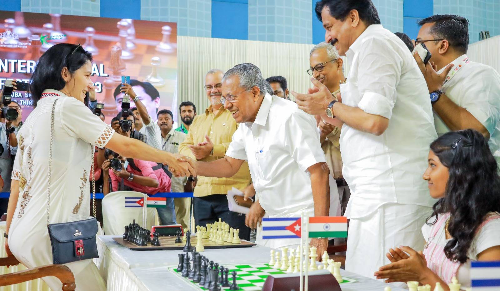 തിരുവനന്തപുരം: പ്രഥമ ചെ ഇന്റർനാഷനൽ ചെസ് ഫെസ്റ്റിവൽ തിരുവനന്തപുരം ജിമ്മി ജോർജ് ഇൻഡോർ സ്റ്റേഡിയത്തിൽ ക്യൂബൻ ഗ്രാൻഡ് മാസ്റ്റർ ലിസാന്ദ്ര തെരേസ ഒര്ദാസ് വാല്ദെസുമായി കരുക്കൾ നീക്കി മുഖ്യമന്ത്രി പിണറായി വിജയൻ ഉദ്ഘാടനം ചെയ്തു. കായിക മത്സരങ്ങൾ ദേശാതിർത്തികൾ ഭേദിച്ച് മനുഷ്യന്റെ ആനന്ദിപ്പിക്കുമെന്നും അതുകൊണ്ടാണ്, ലോകകപ്പിൽ പങ്കെടുത്തിട്ടില്ലെങ്കിൽ പോലും കേരളത്തിന്റെ നിസ്സീമമായ പിന്തുണയ്ക്ക് ഫിഫ നന്ദി അറിയിച്ചതെന്നും മുഖ്യമന്ത്രി പറഞ്ഞു.